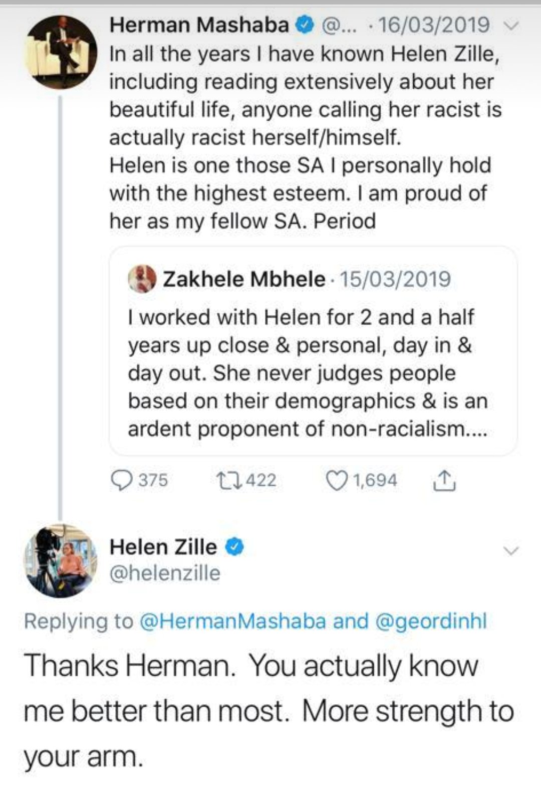 Helen Zille On Twitter You Started In The Middle Of The Series Dude Those Are Not All My Tweets There Were 2 Crucial Contextualising Ones Before The First You Post Why Are